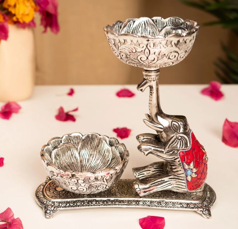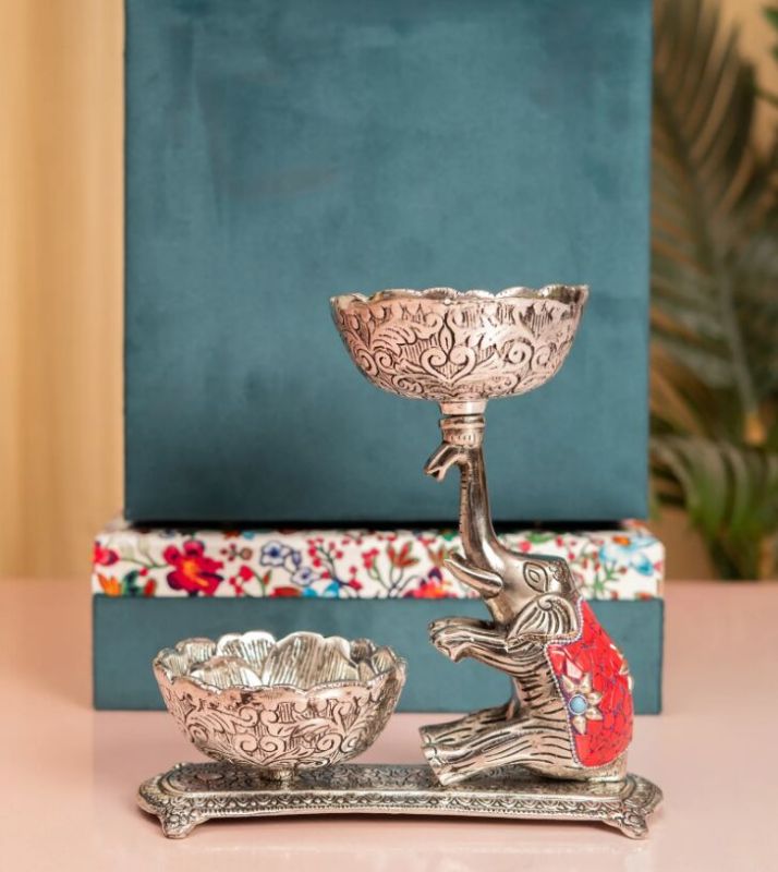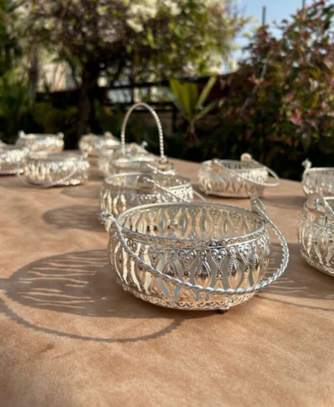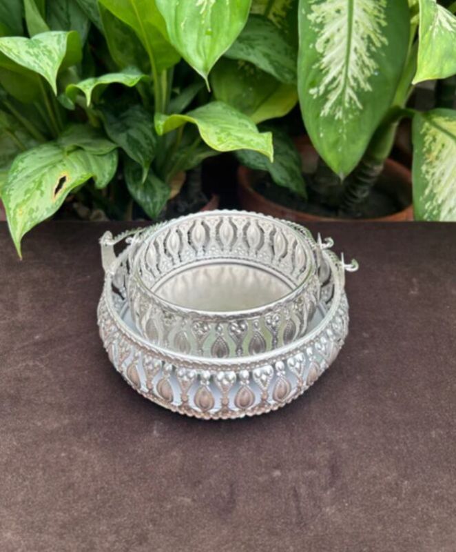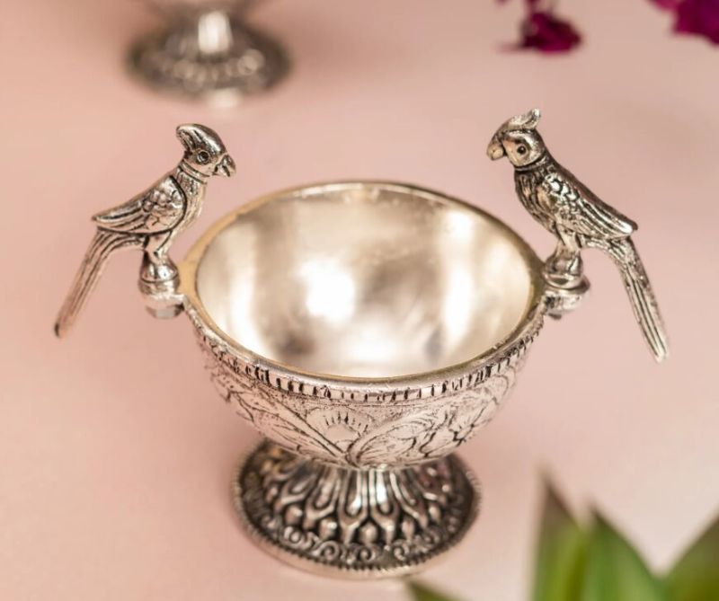 Leading Manufacturers and Wholesaler of German Silver Dry Fruit Box, German Silver Elephant Bowl Set, German Silver Parrot Bowl and German Silver Round Basket from Moradabad.