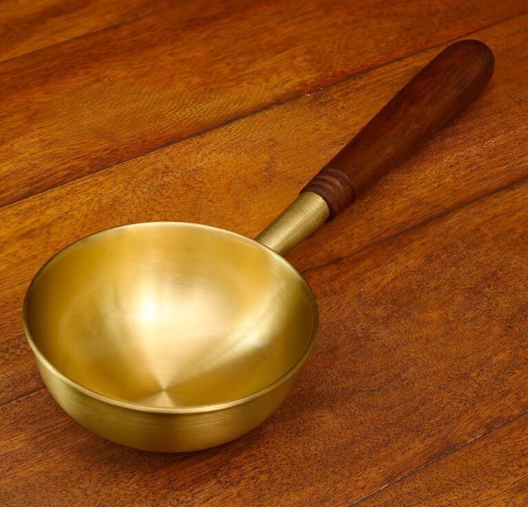 Home › Products › Brass Kitchen Utensils › Premium Non Stick Brass Tadka Pan With Wooden Handle